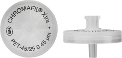 Spritzenvorsatzfilter CHROMAFIL® , Polyester (PET) Spritzenvorsatzfilter erhalten Sie günstig bei Faust Labscience GmbH Hydrophile Membran für polare wie auch unpolare Lösemittel. Der HPLC-Filter, besonders geeignet für Mischungen von Wasser mit organischen Lösemitteln, für die TOC/DOC-Bestimmung, nicht zytotoxisch, inhibiert das Wachstum von Mikroorganismen und höheren Zellen nicht. Polyesterfilter mit integriertem Glasfaser-Vorfilter (GF/PET): empfohlen für stark mit Schwebstoffen belastete Lösungen und Lösungen mit hoher Viskosität.